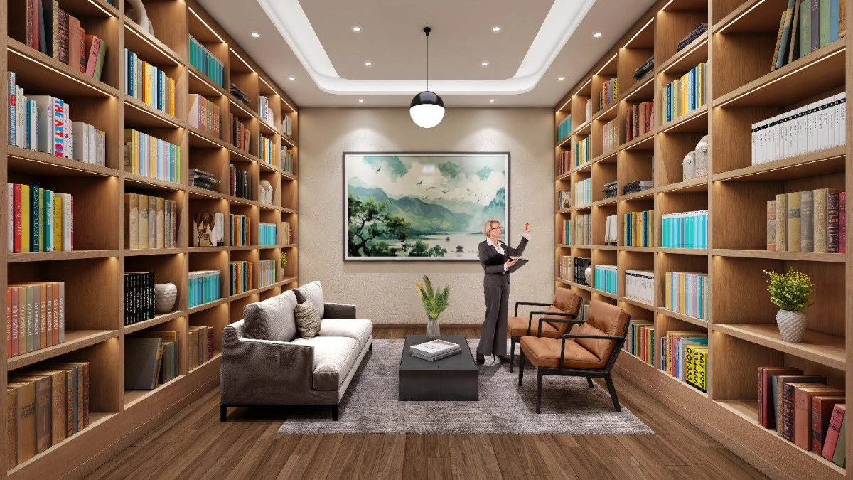 A serene and thoughtfully curated reading space designed for quiet study, relaxation, and intellectual enrichment, offering a peaceful retreat within the community.